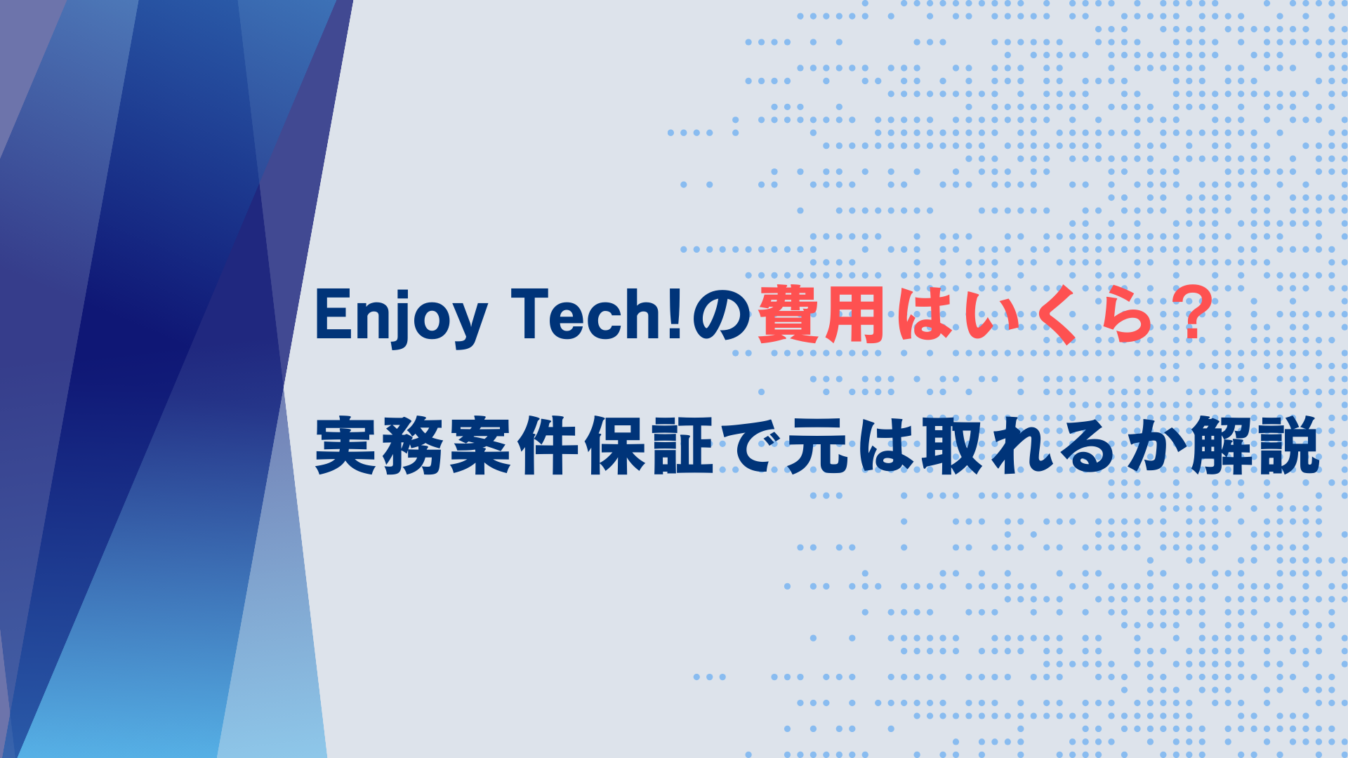 Enjoy Tech!費用は「実務実績」を買うための先行投資
