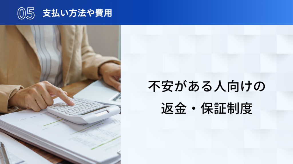 支払い方法や費用に不安がある人向けの返金・保証制度